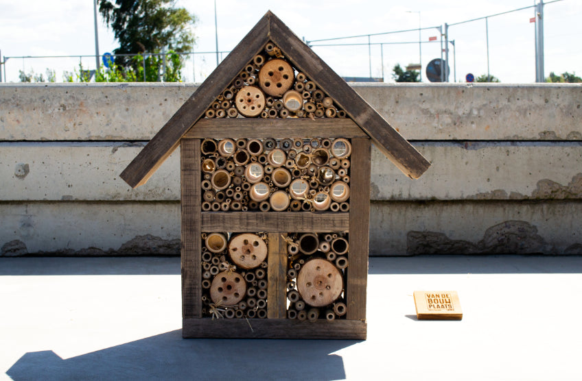Dit ambachtelijke insectenhuis draagt bij aan een groenere omgeving en ondersteunt vakmanschap met een sociaal hart.